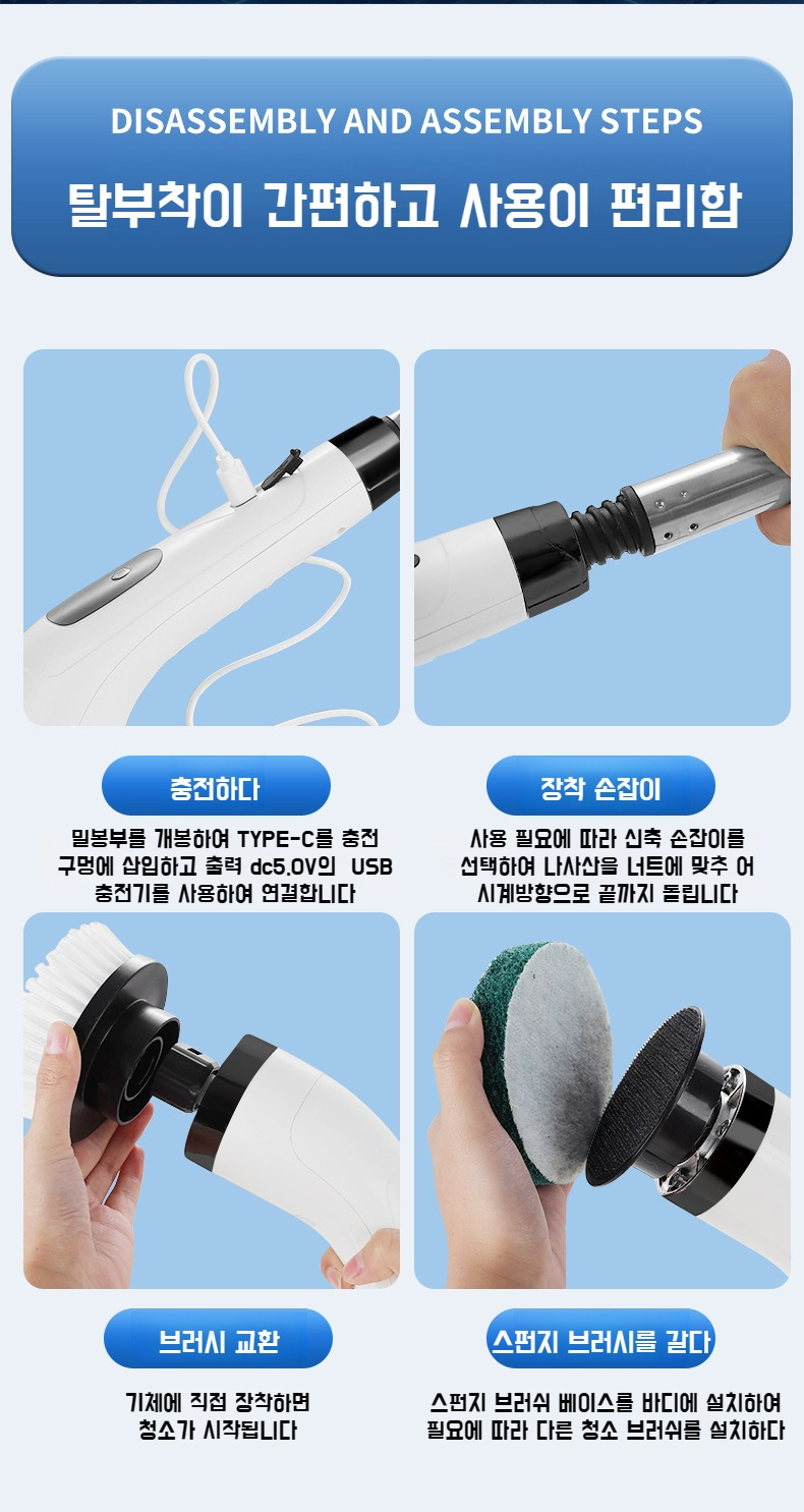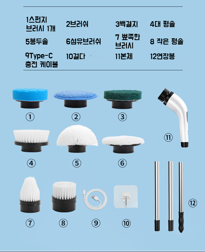 가정용 겸용 전동 청소 브러시 다기능 청소 브러시 길이 9인 1청소 욕실 유리 청소 브러시