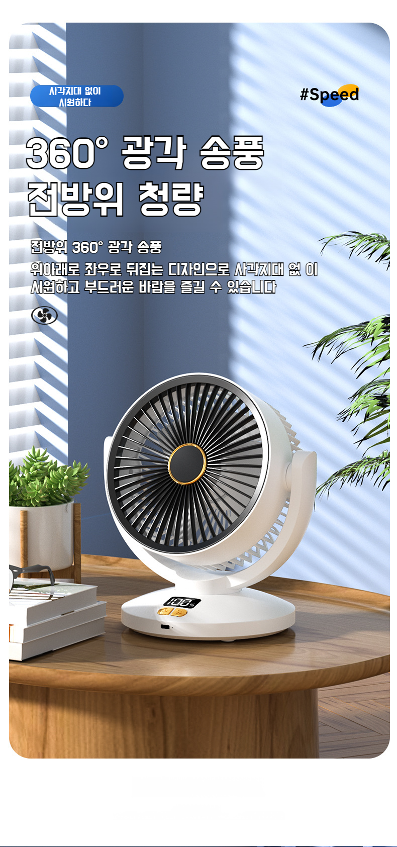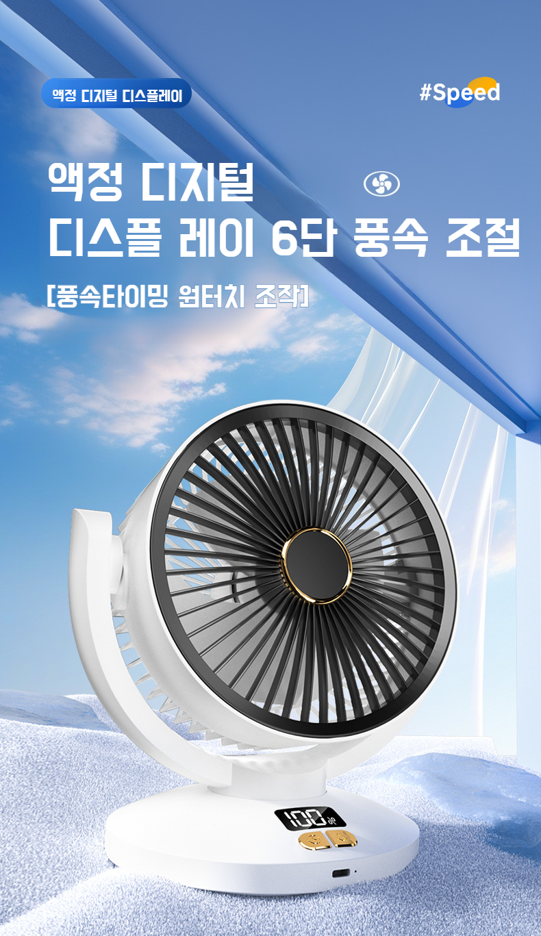 가정용 탁상용 선풍기 다기능 6단 순환팬 조명 무음 헤드팬 휴대용 충전 롱 탁상용 선풍기