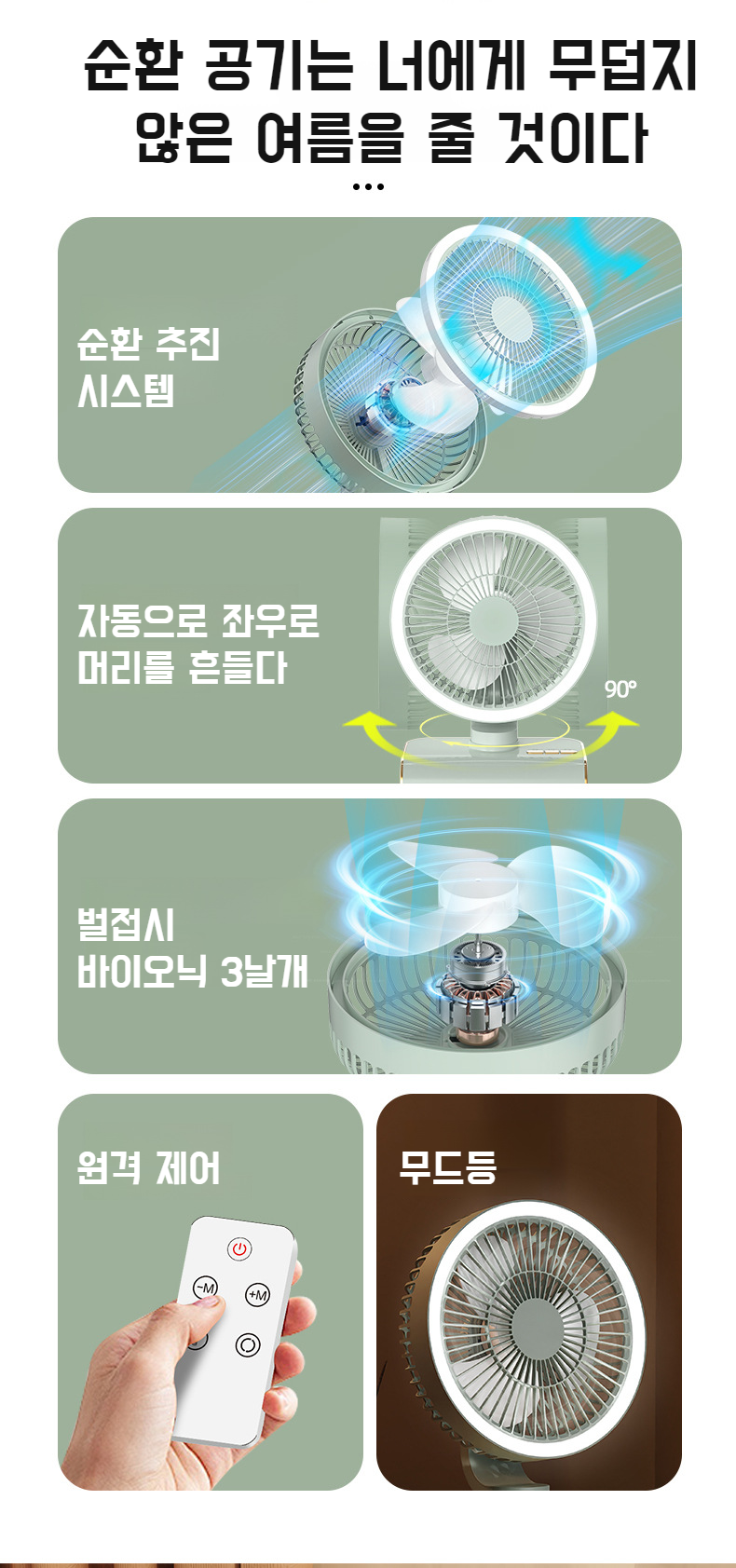 탁상용 삼합일 선풍기 원격 조종 헤드 팬 공기 순환 고풍력 가정용 플로어 팬 Usb 충전 선풍기